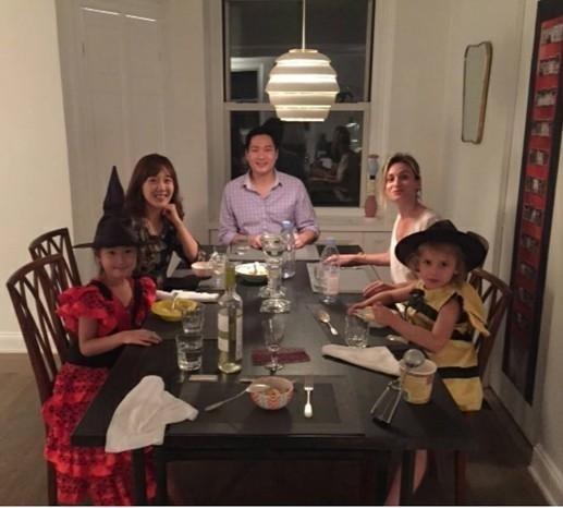 공개된 사진 속에는 서민정 가족이 지인과 함께 가족 식사를 하는 모습이 담겨 있다. 남편과 요정 복장과 모자를 쓴 예진양이 눈길을 끈다.
