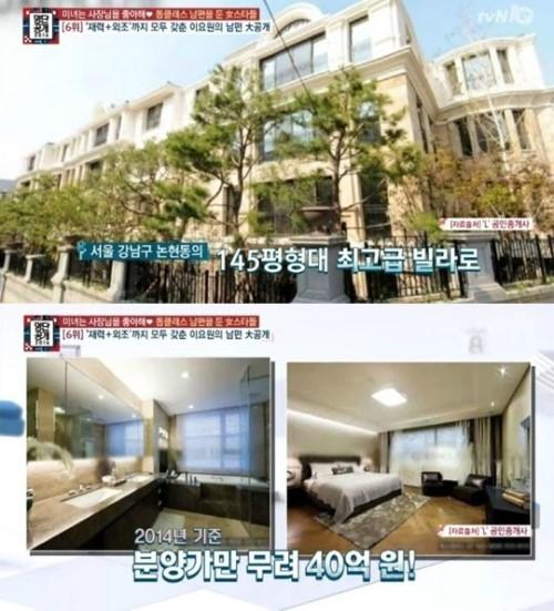 이요원이 사는 집은 논현동에 위치한 145평형 최고급 빌라로 분양가만 무려 40억 원을 호가한다. 류시원과 장근석의 자택으로 알려져 화제를 모으기도 했다.