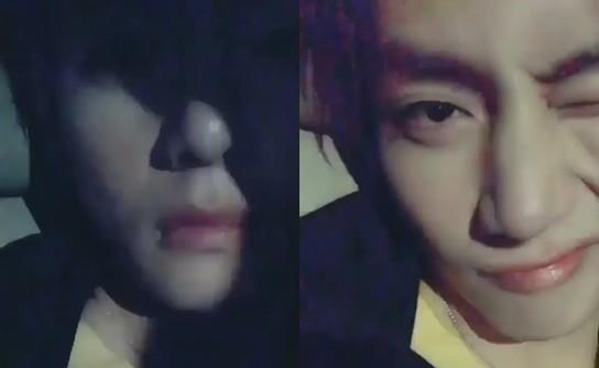 뷔는 최근 자신의 인스타그램에 한 개의 영상을 게재했다. 늦은 저녁 차안인 듯한 곳에서 뷔는 그늘에 숨어 있다.