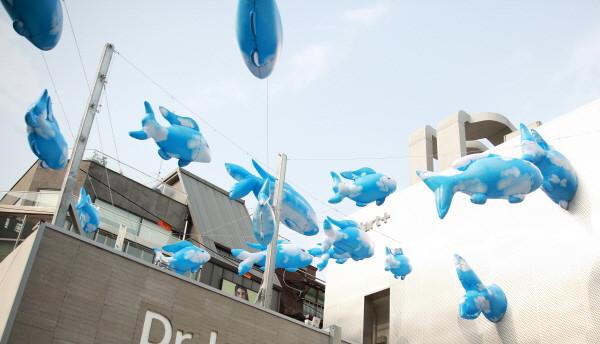 28일 강남구에 따르면 ‘블루피쉬’는 예술을 입히는 공공미술 전시 프로그램의 일환으로 추진되는 것으로, 풍선 재질로 만들어진 길이 40cm~2m 다양한 크기의 물고기 약 400여마리가 29일~8월27일 강남구 가로수길을 날아다니게 된다.