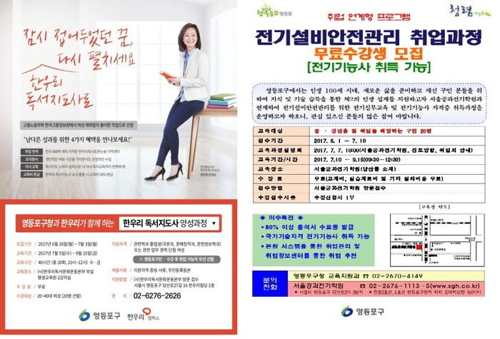 세부적으로 이번에 실시되는 교육은 ▲전기안전관리 취업과정 ▲한우리 독서지도사 양성과정 등 2개로 각각 오는 7월10일, 7월3일까지 신청 접수를 받는다.