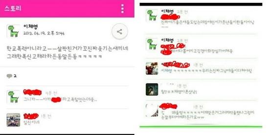 글쓴이가 게재한 사진 중 이채영이 남긴 게시글은 “학교폭력 아니라고 살짝 친 것 가지고 진짜 웃기는 새끼네 그래 학폭 신고해라 하든동 말든동”이라는 글을 게재햇다.