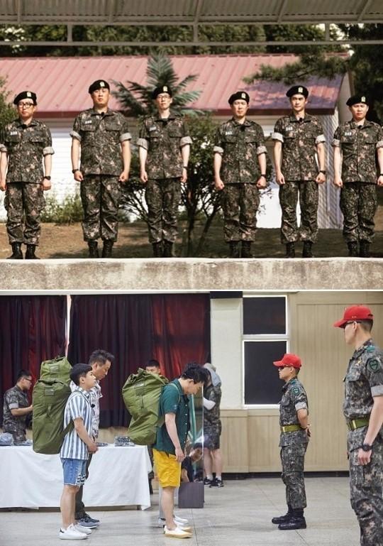 해당 사진에는 박명수, 정준하, 유재석, 하하, 배정남, 양세형이 군복을 입고 군기가 바짝 든 모습으로 일렬로 서 있다. 이들은 주먹을 꽉 쥐고 웃음기 없는 심각한 얼굴로 진지함이 역력했다.