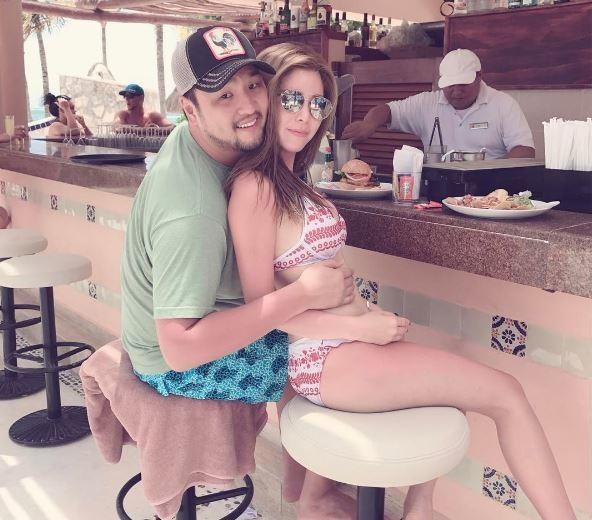 사진 속 김태우는 김애리와 다정한 포즈를 취하고 있다. 비키니를 입고 있는 김애리는 소율, 지율, 해율 세 아이의 엄마지만 날씬한 몸매를 유지하고 있어 눈길을 끈다.