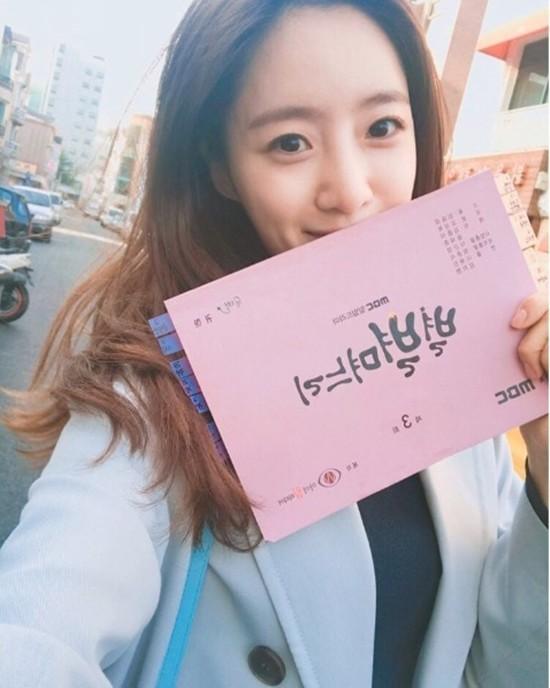 공개된 사진 속에는 '별별 며느리' 대본으로 얼굴을 가린 함은정이 미소 짓고 있는 모습이다. 특히 그의 작은 얼굴과 큰 눈으로 완성된 인형 미모가 시선을 사로잡는다.
