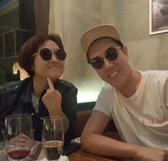 공개된 사진 속 김영철은 송은이와 함께 커플 선글라스로 달달한 매력을 뽐냈다. 특히 미소를 짓고 있는 두 사람의 모습이 눈길을 끈다.