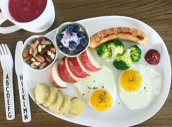게재된 사진 속에는 흰 접시위에 소량의 과일과 채소, 계란, 견과류, 등이 담겨져 있으며 건강하면서도 혹독한 식단이 눈길을 끌었다.