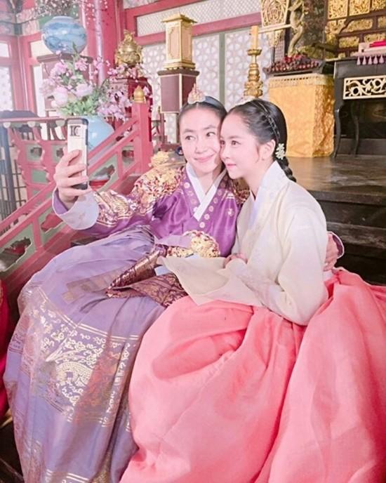 사진 속에는 '군주'에 함께 출연한 김소현과 배우 김선경이 나란히 앉아있는 모습이 담겨있다. 특히 두 사람의 우아한 한복 자태가 시선을 사로잡는다.
