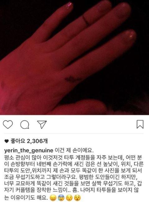 당시 백예린은 SNS를 통해 평소 타투에 관심이 많아 타투 계정들을 둘러보던 중 본인과 너무 똑같은 위치에 똑같은 타투를 한 사진이 발견되어 갑자기 '커플템'을 한 것 같다는 등 무섭다는 심경을 전했다.