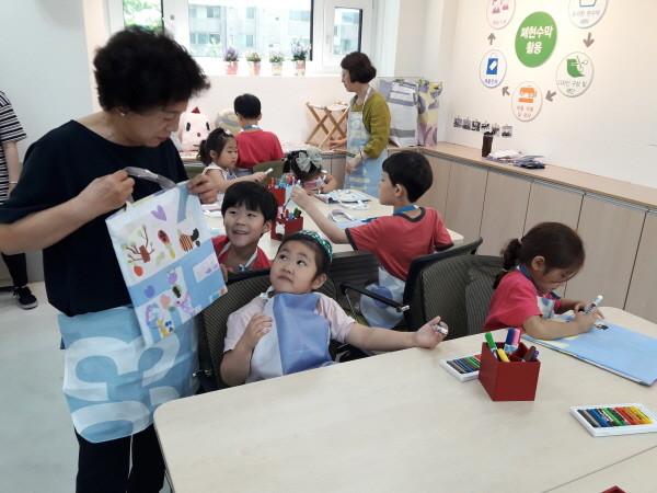 아울러 어린이들이 체험장에서 시장형 노인일자리사업인 폐현수막 재활용 사업단 노인들의 실제 작업 과정까지 견학할 수 있어 폐현수막 재활용 과정의 이해도도 높일 수 있다.