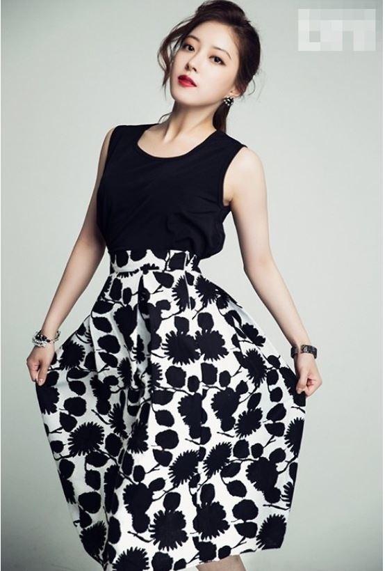 사진 속 이세영은 블랙컬러의 슬리브리스에 화이트와 블랙이 프린트 된 스커트를 입고