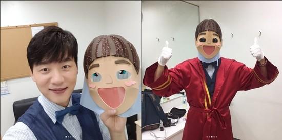 공개된 사진 속 그는 ‘복면가왕’에서 쓰고 나온 ‘철수’ 가면을 들거나 쓰고 즐기고 있는 모습이다.