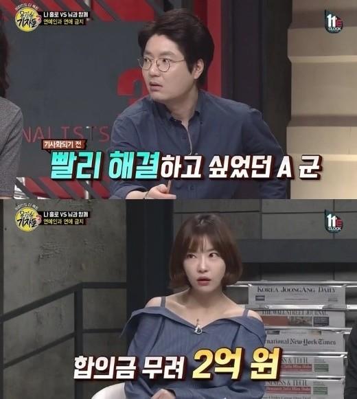 이에 “부모님은 ‘A군은 성폭행범으로 고소하겠다’고 했고, 한창 주가를 올리고 있던 A군은 2억 원의 합의금을 줄 수밖에 없었다. 비밀연애를 잘 못 했다가 2억을 날렸다”고 덧붙였다.