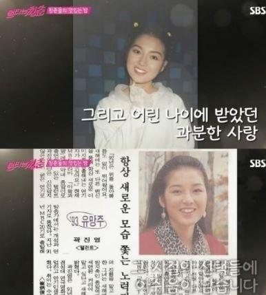 과거 방송된 SBS '불타는 청춘'에서 곽진영의 리즈시절 외모가 담긴 사진이 공개됐다.