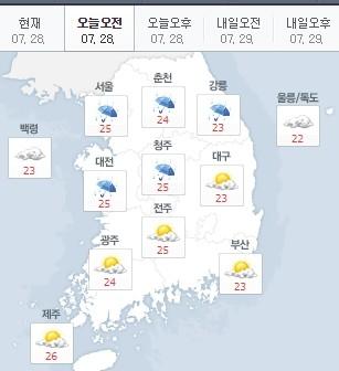 현재 서울은 25도, 춘천 24도, 대전 25도, 청주 25도, 대구 23도, 부산 23도, 제주 26도를 기록 중이다.