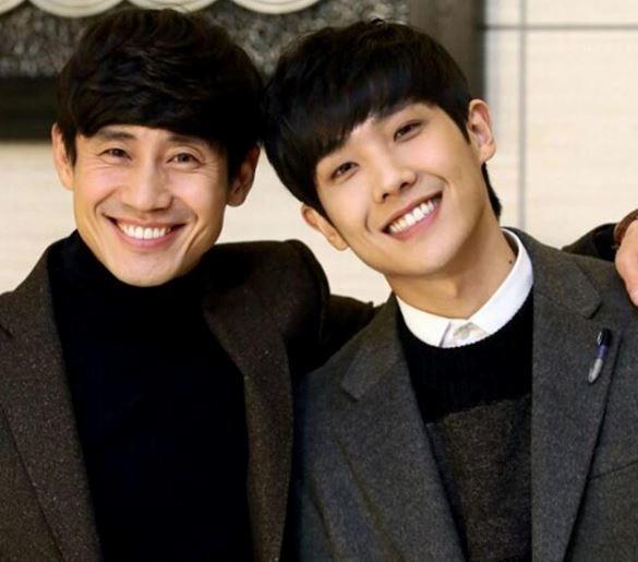 사진 속 신하균은 이준의 어깨를 감싸며 환한 미소를 짓고 있으며 두 사람 모두 풋풋한 외모를 자랑하고 있어 이목을 집중시켰다.