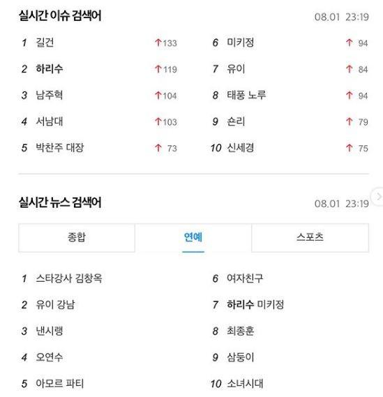 이에 이날 그는 실시간 검색어에 오른 자신의 이름과 최근 이혼한 미키정의 이름까지 오르자 이를 캡처해 자신의 인스타그램에 게재했으며 "착한 내동생 건이와 지금은 이혼해서 따로하지만 최고의 남자 미키정씨 둘의 미래에 꽃길만 있기를 바래요!"라는 글을 게재해 눈길을 끌었다.