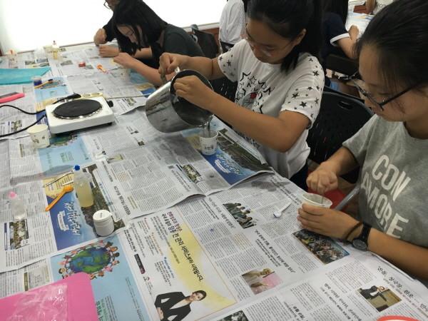 | ▲ 지난해 실시된 환경교육에 참가한 학생들이 친환경비누를 만들고 있는 모습.(사진제공=양천구청) | ||