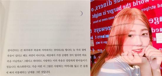 최준희 양은 최근 자신의 인스타그램에 “살아간다는 건 하루하루 죽음에 가까워지는 것이라고들 합니다. 늘 우리 곁에 죽음이 있다고 해도 과언이 아니지요. 세상에서 가장 공평한 것이 있다면 바로 죽음 아닐까요? 그렇다고 하더라도 사랑하는 이의 죽음은 담담하게 받아들이기 힘듭니다. 따스하면서도 가슴 아린 이 그림은 사랑하는 어머니를 잃고 큰 슬픔에 빠져 비통해 하는 남매를 그린 것입니다”라는 글귀가 담긴 사진을 게재했다.