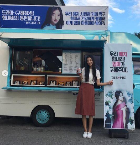 공개된 사진 속에는 김미경이 선물한 커피차 앞에서 환하게 웃고 있는 서예지의 모습이 담겨있다.