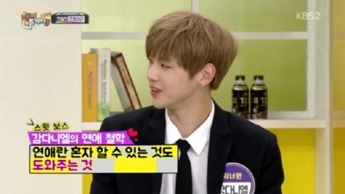 이날 MC들은 연애경험을 물었고 강다니엘은 "제가 먼저 대시하는 스타일이다. 부산 남자들은 대체로 무뚝뚝한 편인데 저는 다정다감하게 한다. 여자친구가 식당에서 여기 맛있다고 말하면 '내는 니랑 평생 올 수 있는데'라고 한다"고 연애 스타일을 소개했다.