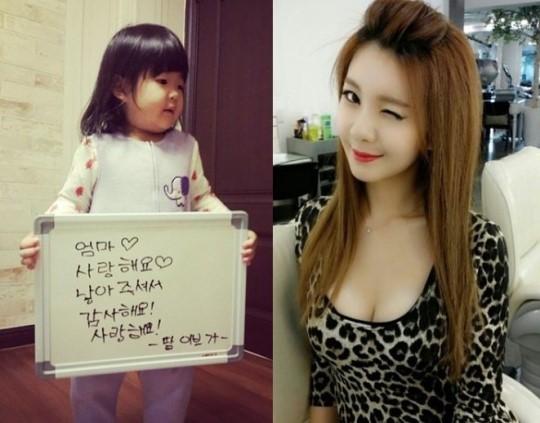 해당 사진에는 "엄마 사랑해요. 낳아주셔서 감사해요! 사랑해요! 딸 이브가"라고 적힌 보드를 들고 있는 이파니의 딸 이브 양의 모습이 담겨 있다.