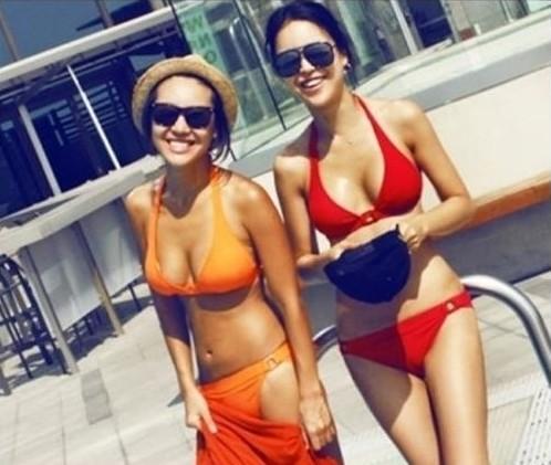 공개된 사진 속 두 사람은 한 수영장에서 해맑게 미소지며 카메라를 응시하고 있다.