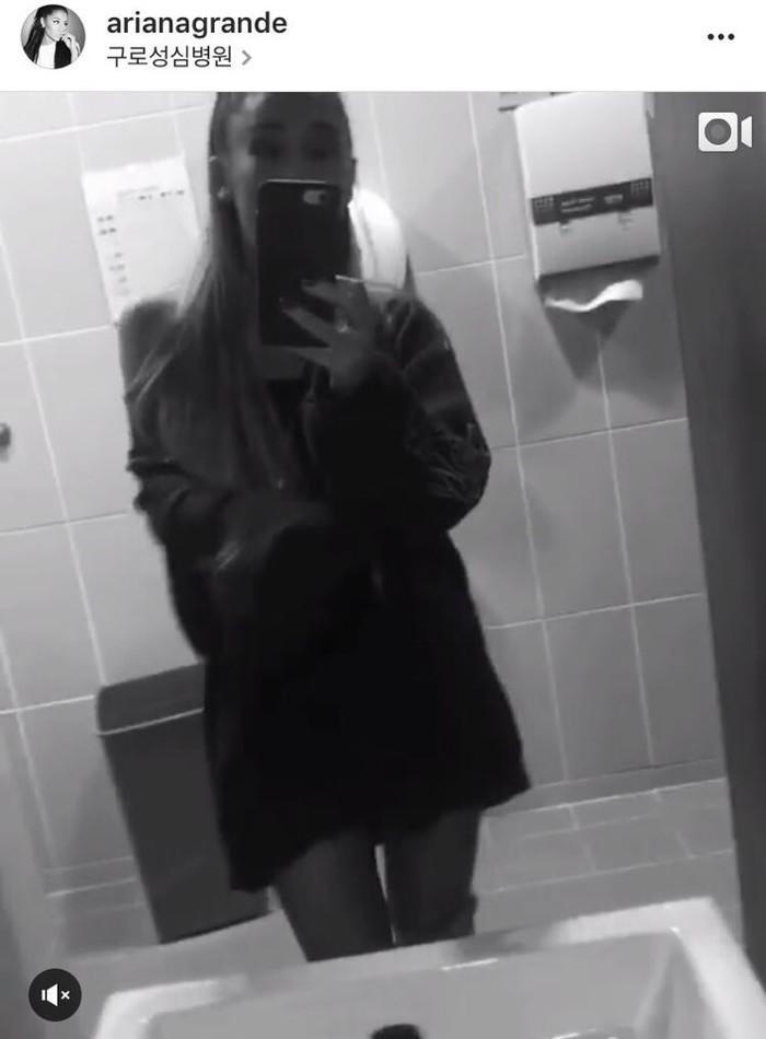 아리아나 그란데가 내한 공연 전 화장실에서 노래 연습을 하는 모습으로 친근감을 유발했다.