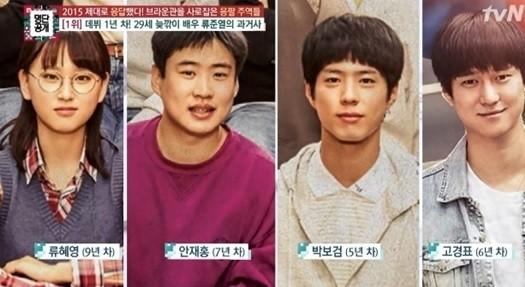 1위는 류준열이다. 그는 영화 ‘소셜포비아’로 얼굴을 알린 후 드라마 ‘프로듀사’에도 등장했다. 29세의 나이로 늦게 데뷔한 류준열은 사실 사범대 진학을 목표로 학업에 매진했다. 그러나 한 차례 낙방했고 재수 시절 연기자의 꿈을 키웠다.