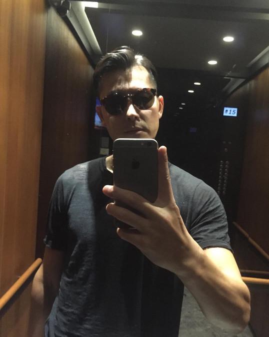 그는 공개된 사진 속에서 엘리베이터를 타고 올라가는 중에 썬글라스를 끼고 엘리베이터 거울에 비춰 사진을 찍고있는 모습을 보이고 있다.