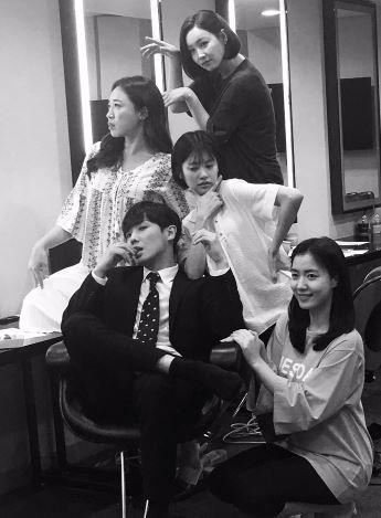 공개된 사진 속 이미도는 이준, 정소민, 류화영, 이유리와 함께 코믹한 포즈를 취하고 있다.