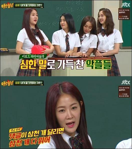 소유는 과거 방송된 JTBC 예능프로그램에 출연해 "기억력이 좋아 악플도 다 기억한다"고 말했다.