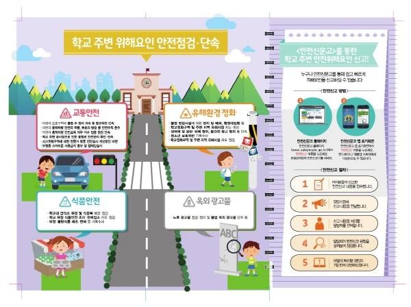 국민안전처와 합동으로 실시되는 이번 정비는 지역내 유치원 50곳, 초등학교 30곳, 중학교 19곳, 고등학교 15곳으로 주출입문 300m, 학교 경계선 200m 이내의 어린이 보호구역 및 학교환경위생정화구역을 대상으로, 퇴폐ㆍ선정적인 유해 광고물과 보행사의 통행에 지장을 초래하는 불법광고물, 사고발생시 우려가 되는 간판 등을 점검하는 방식으로 진행될 예정이다.