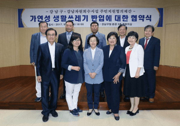 장원석 구 청소행정과장은 “이번 협약 체결이 강남주민지원협의체와 지속적인 협력체제 유지와 안정적인 반입에 초석이 돼 보다 청결한 강남구 도시미관 조성에 기여하게 될것”이라고 말했다.