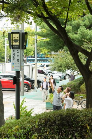 날마다 심각해지는 기후변화와 미세먼지에 대한 대응방안 제고를 위해 설치된 ‘미세먼지 신호등’은 신정4동 도시대기측정소의 미세먼지 측정 결과를 실시간으로 전송받아 교통신호등과 같이 파랑색(좋음), 녹색(보통), 노랑색(나쁨), 적색(매우나쁨)으로 나타내는 것으로, 미세먼지 농도가 0~30㎍/㎥이면 좋음, 31~80㎍/㎥는 보통, 81~150㎍/㎥는 나쁨, 151㎍/㎥는 매우나쁨으로 표시한다.