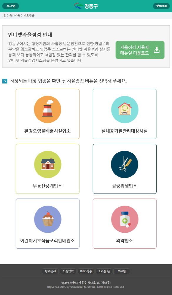 | ▲ 강동구 ‘인터넷 자율점검시스템’ 화면 | ||
