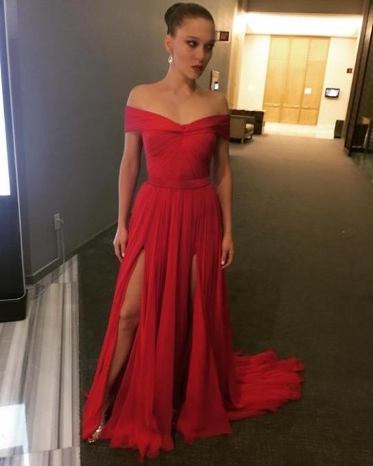 사진 속 레아 세이두는 어깨라인을 드러낸 레드 드레스를 입고 있다. 드레스 자락에는 트임이 들어가 있어 각선미를 은근히 노출할 수 있는 섹시한 실루엣으로 돼 있다.