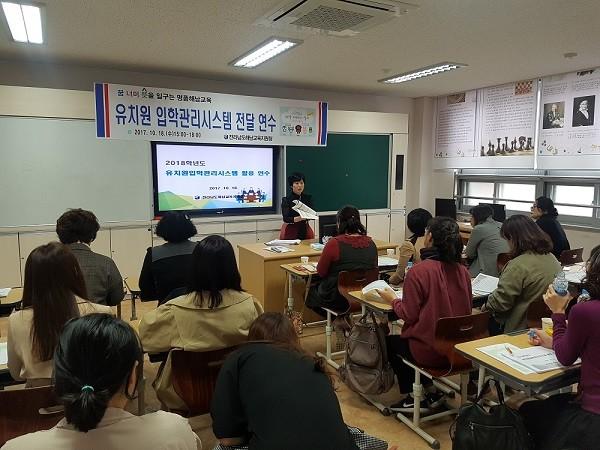 이번 연수는 2018학년도 유치원 유아 모집·선발에 도입되는 온라인 입학관리시스템에 대한 유치원 교사들의 이해를 돕고 활용 방법을 안내하기 위해 마련됐다.
