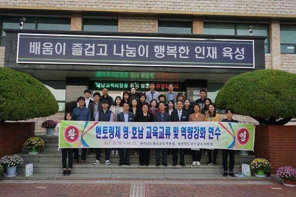 이번 연수 인솔자인 김윤기 교육협력팀장은“영호남 교류 사업이 교장․교감․교사․학생뿐만 아니라 일반직공무원까지 확대할 수 있는 계기가 된 것을 큰 의미로 생각한다”며, 해남중학교 신규 공무원 김요셉 주무관은“이번 연수를 통해 타 지역 교육현장을 살펴볼 수 있었으며 교육행정업무의 대한 견해를 넓힐 수 있었던 좋은 기회였다”고 말했다