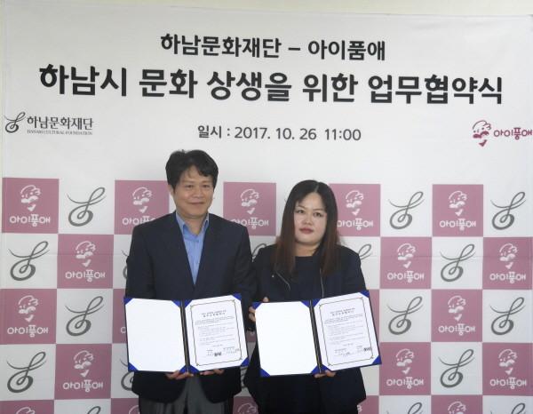 이번 업무 협약으로 재단과 아이품애는 문화관련 컨텐츠 공유를 위한 네트워크를 구축해, 앞으로 하남시 문화예술 상생발전에 앞장설 예정이다.