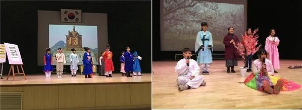 | ▲ 2017 초등학생 영어역할극 대회에서 금상을 수상한 해남동초(사진 좌)와 산이서초등학교 학생들(우측) | ||