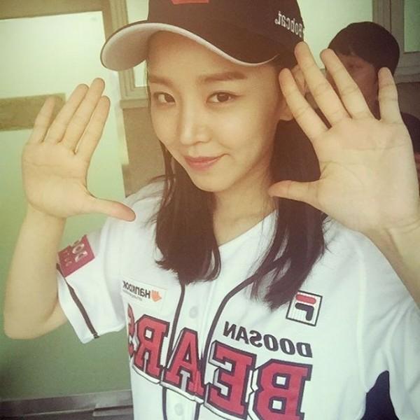 공개된 사진 속 신혜선은 프로야구 두산 베어스 유니폼을 입고 모자까지 완벽히 갖춘 채 카메라를 바라보며 환한 미소를 짓고 있는 모습이다.