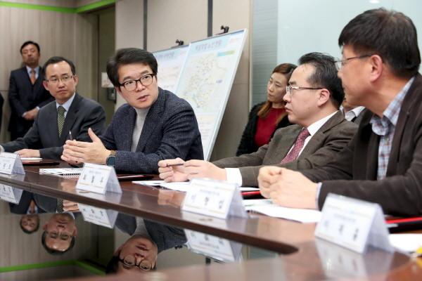 | ▲ ‘지하 공간 안전관리시스템(UGS)’구축을 위한 협의회에서 발언하고 있는 정원오 구청장(왼쪽 두번째)의 모습.(사진제공=성동구청) | ||