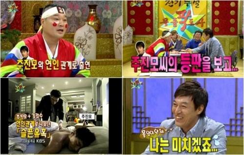 김갑수는 주진모와 조인성의 동성애로 화제가 됐던 영화 '쌍화점'을 봤느냐는 말에 "못봤다"며 "진모가 또?"라고 말해 웃음을 자아냈다.