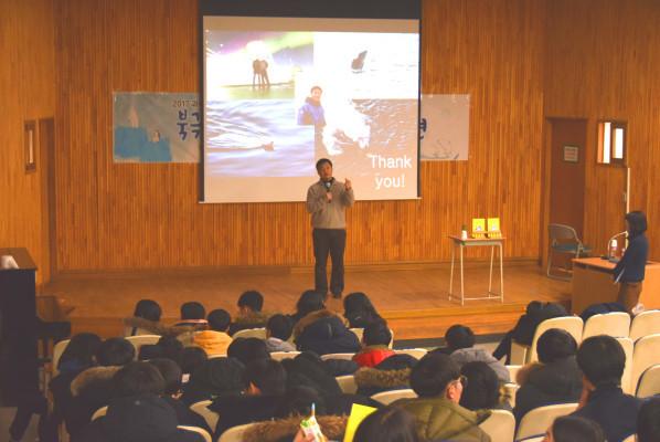 이번 강연에서 김백민 책임연구원은 지구의 기후를 안정적으로 조정하던 북극과 남극이 변화하면서 발생하는 자연 현상들과 해빙의 변화를 통해 발생하는 이상기후, 지구온난화에 대해 과학적 데이터를 활용해 시각적으로 보여주며 학생들이 쉽게 이해할 수 있도록 설명했다.