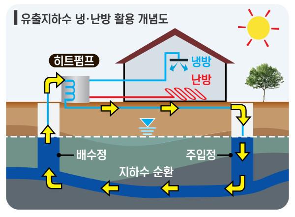 구가 추진하는 ‘유출지하수 활용 냉·난방 시스템’은 설치하면 지하수의 일정한 온도를 이용해 냉·난방을 해 에너지 요금 감소와 화석연료 사용절감의 효과를 볼 수 있는 시스템이다.