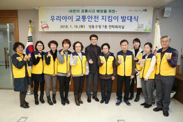 | ▲ 지난 16일 성동구청에서 열린 ‘우리아이 교통안전 지킴이 발대식’에 참석한 관계자들의 모습. (사진제공=성동구청) | ||
