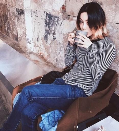 미료는 자신의 인스타그램에 사진을 올렸다. 미료는 의자에 앉아 음료를 마시고 있다. 줄무늬 셔츠를 입고 청바지를 입은 미료의 자연스러운 아름다움이 돋보인다.