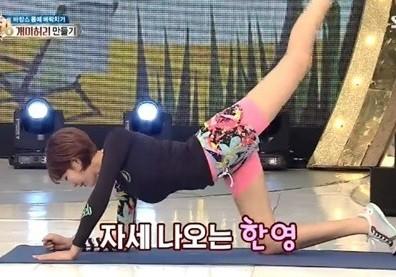 당시 방송에서 한영은 트레이너와 함께 개미허리, 애플힙 만들기 스트레칭을 시연했다.