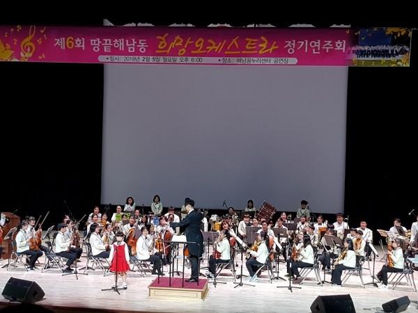 여섯 번째 공연에 나선 땅끝해남동 희망오케스트라는 지난 2012년 9월 교육부 학교예술교육사업으로 창단돼 현재 6년째 활발한 활동을 펼치고 있는 가운데‘책임과 질서’,‘배려와 협동’의 가치를 준수하면서 문화예술체험의 기회를 제공하고 있다.